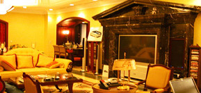 客厅是全家聚会、分享心情的所在,也是家庭和谐与人际关系的表征,所以灯光的布置以温馨为原则。由于现代装潢以卤素嵌灯为主流,若用此款灯饰的人,可在嵌灯下方加装一块雾面玻璃,让投射出来的灯光感觉更加柔和。