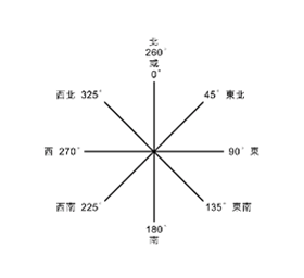转动罗盘盘面,直到罗盘中央天池之内的红线与磁针南北方向重迭,然后观察罗盘平面上十字渔线的方位度数,例如,分别量得165度与345度,及75度及255度,即表示这座建筑物的排列方向为丙壬线及甲庚线了。