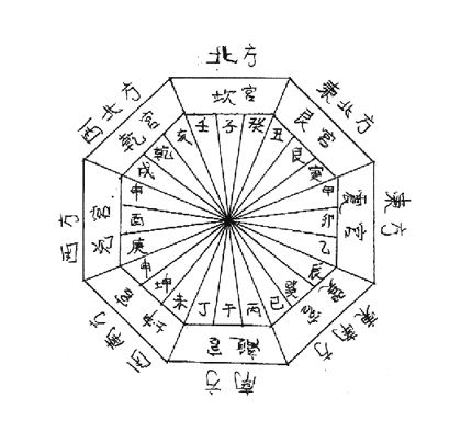 坎宫:即北方,内藏壬子癸三山(顺时针排列)