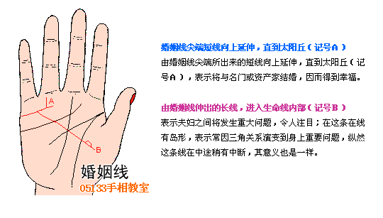 手相解读婚姻(7)婚姻线延伸到其他线上