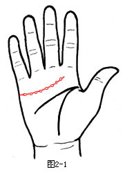感情线如成锁链状(如图2-1),中断或断断续续及有岛纹附上,而且拥有一双柔软很富弹性的手的话,那么,这样的人性别无论男女,均属易动情感的手。