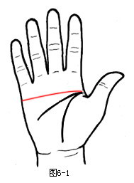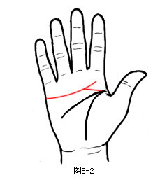 假如三线同源,即感情线末端有一支线下垂,伸入理智线,也是感情线在干扰理智线,但情况较(图6-1)轻微,少了一份糊涂心,却多了一份无谓的牺牲精神,爱情虽美,却带有一些无奈(如图6-2),此特征的人称为“感情牺牲型”,这种人婚前如果失恋过,在婚后反而较安定。感情线末端不喜下垂或有支线下垂,均代表感情上的伤心、挫败;感情线末端若能上升,则表示感情发展顺利,能拥有爱情,并享受爱情。信命虽然是一种人生态度,但这种态度贵在信与不信之间。爱情固然美好,但这种美好贵在真心与付出之间,所以事实上真正聪明的人,是聪明糊涂恰到好处的人