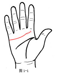与相爱的人一起慢慢变老,这种浪漫表现在手相上就是——感情线末端走向食指下方或食指与中指间成叉状(如图1-1)。表爱心坚定、尊重友谊、婚姻幸福,为爱情之最佳保证。