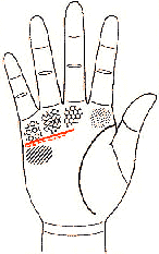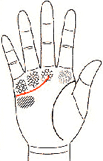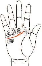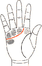 | ![]() 延伸到木星丘 是屬於有非常豐富的感情 和具有極高理想的類型 | 延伸到木星丘與土星 丘的中間 具有純真的愛情 ![]() |