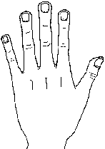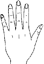 原始手又称劣等手、下等手。其特征为手指比较一般的手肥短厚硬,指头粗纯笨拙,手形短而弯曲,皮肤颜色较深,掌背青筋浮露,指节粗硬如树根,指甲短而皮肤粗糙,指难反屈,指背纹深而杂乱,掌纹极简单;原始手这种手形现以甚小见,或偶然见一缺乏理智,暴戾易怒,但又胆怯狡猾,不知感情为何物,劳动力强。这类手型者多属肝火亢盛,而患眩晕和呼吸系统疾病机会较高。