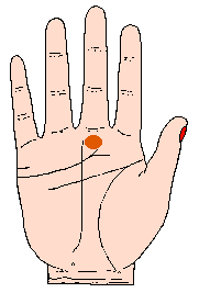 土星丘的位置是在中指基部之下,相当于中国手相学的离位;一般土星丘越高耸中指越长;但通常土星这丘发达的人,是比较少。