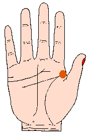 金星丘所在的位置,是在第一火星丘的下面,手颈线对上的部份,即拇指底下,生命线内边的部份,相当于中国手相的艮位。金星丘较为发达的人,主仁慈、富同情心、情爱温和、感情丰富等;通常这个丘称为(爱)丘,父母之爱其子女,子女之爱其双亲,夫妇间之恩爱,朋友间之友爱等;这个(爱)都是从我们内心表达出来的,当然爱的种种是有区别的。