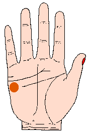 木星丘低陷时:主愚笨,粗俗,无道德观念,怯懦,好色,不忠实,不爱名誉,与此木星丘发达时所主的事项,恰恰相反。