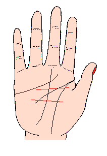在手掌上有一种线叫(障碍线),它可以障碍气运的顺利展开,这条线表示失败,不如意,损害,离别等苦恼;有的很短而且在越过细小的结婚线;更有出自金星丘的又粗又长的线,出自金星丘的障碍线连接于结婚线,表示婚姻将以不幸场面结束,这条线如越过命运线,在职业或家庭生活会发生纠纷,总而言之,这条线表示气运发展受障碍,在手相上至为重视。