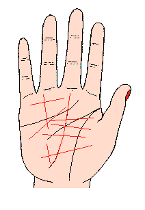 横越手掌的无数障碍线,与其它竖线有如网一般交叉,以致分不出何线接连何线,极为复杂,我们常看见这种手纹;通常皮肤至为坚硬,而且粗燥不光滑,同时线条有如网的人,表示金钱上至为操劳,手掌皮肤柔软,而线条如同网的人,其主要线条难于分别,这类相的人或神经质或知能不大灵活,这手相以女性为多,同时处世欠缺圆滑的人,也常有此相。