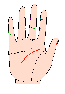 第二个特征是:智慧线过份幼弱,其至无力地弯垂,同时食指的指尖比较尖削;智慧线过份幼弱,主会长期过份内向,羞怯,拘谨,困窘,畏惧,凡事都不放心,害怕批评,更害怕自己在无意中得罪人,于是性格会不断的萎缩而缺乏进取,缺乏斗志,在做事方面,往往是不求有功,但求无过。