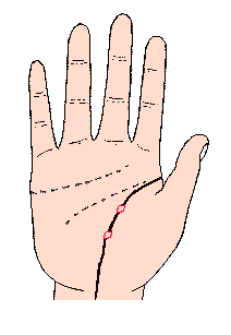 生命线短,在中途忽然变细小而消失的,即表示生命力弱,但若以线之长度来决定是否短命是危险的;如左右手的生命线均短,且几乎在同一位置终止的相,即表示在终点的年龄,有生命危险(或仅活到那个年龄),但如果只有一手的生命线较短,则无此顾虑;即使生命线再短,但大拇指不错或智能线优秀或辅助线的火星线有劲的话,那就可补救生命线的缺点,短的生命线也有微微伸长的可能性;总之:生命线长的人,如喜欢纵欲或暴饮暴食,亦无法长寿,相反的,即使生命线短的人,如果能多多保重身体,亦能多活几岁。