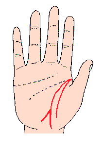 从食指和拇指之间向夏(手掌跟部)延伸的生命线,代表健康和一生的大事;