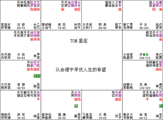 3,第三步大运入先天福德宫,此步运之成败往往和自己的心态联系密切。因为是福宫四化成为全盘变换之关键。癸干破军化碌入大运子女宫位冲大田,且为先天兄弟宫,凡破军之四化都是彻底性的,她这步运恐怕是要经常变换居住地点。且和兄弟关系较为密切。且癸干使贪狼化忌入先天田宫,也是变迁之迹象。日月会昌曲逢碌星主桃花,且巨门转化权冲先天夫妻宫,这步运当有恋爱之事。且因为是先天福德宫化出之四化,命主此运心态之变化可以说是和感情息息相关的。今年流年癸末,使贪狼双化忌再度冲田宫,有走动之事,流年夫妻宫成天梁逢煞格不利姻缘,主孤克。贪狼化忌性质为“夺爱”。主精神方面之遗憾。 竟是男朋友另择他人。紫斗信息和卦象是一致的。