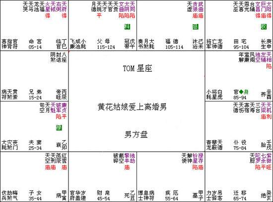 绪言:这是一位女网友的盘,由于感情不顺利,向笔者求助,并发盘请我合婚。从男盘不难发现男方有过一段不成功的婚姻,这位黄花女爱上了离婚男,结果会如何?或许我该伸出延助之手。