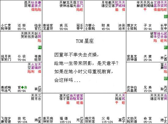 茶毕,小寒几句,果不出所料,易友话锋一转,拿出一张紫微斗数盘,并说:"这是我从一本台湾斗数书中看到的命例,里面有命主人生过程介绍,那你看此人十一岁时发生了什么事?""一个十一岁的小姑娘,理应在学堂读书,能有什么大事发生呢",我不以为然的说。